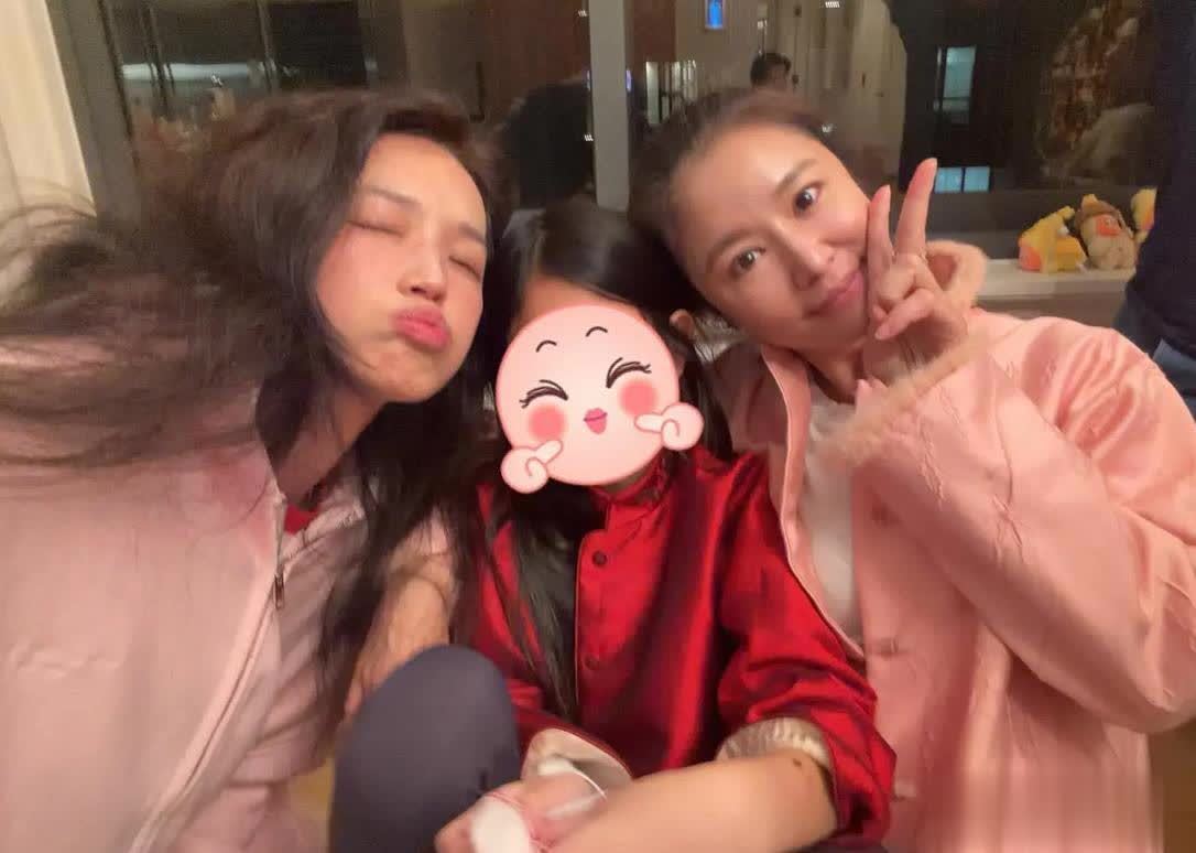 舒淇还晒出了她与林心如以及林心如的宝贝女儿小海豚的合影,穿着大红色新中式的小海豚站在C位的位置,林心如和舒淇各自站在她的两边,两人都靠着小海豚,十分宠溺的样子。林心如和舒淇都摆出了不同的pose拍照,看起来很惬意,很有松弛感。